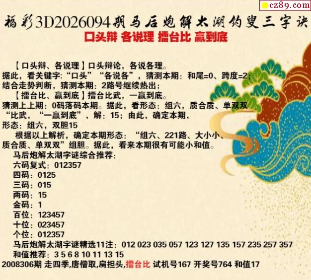 马后炮解26年094期3d太湖钓叟之 赢到底