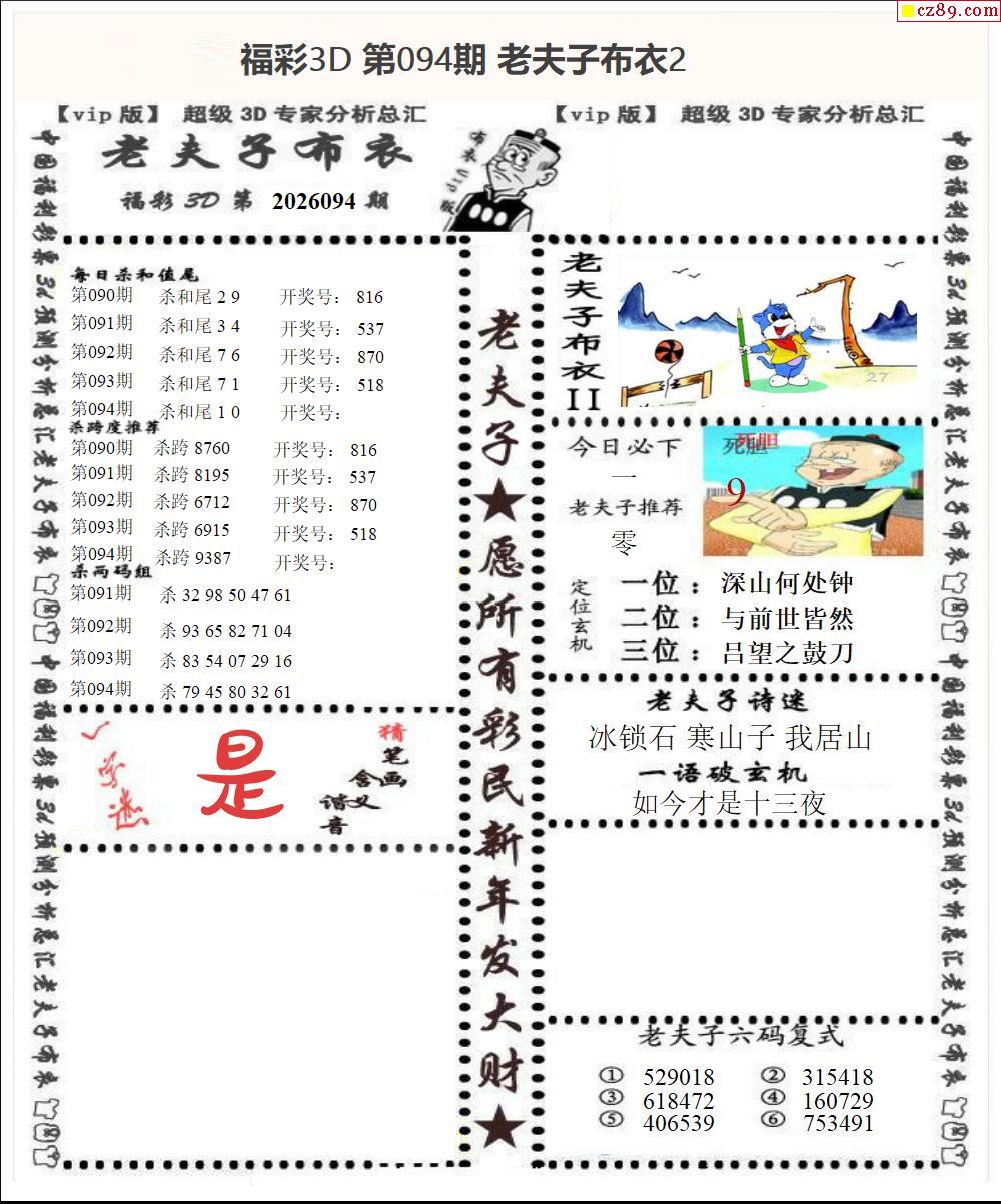 神舟26094期3d图谜总汇牛彩网采摘收集