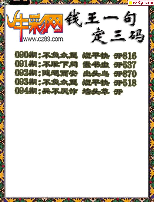 牛彩版3D字谜彩报图26年094期打印版