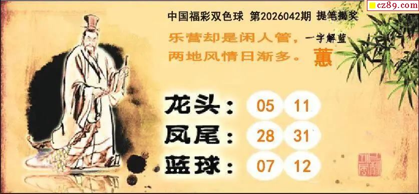 26年福彩双色球042期 峨嵋道姑预测诗