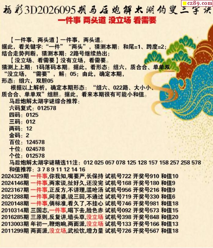 26年095期牛彩版解太湖钓叟三字诀今日汇总
