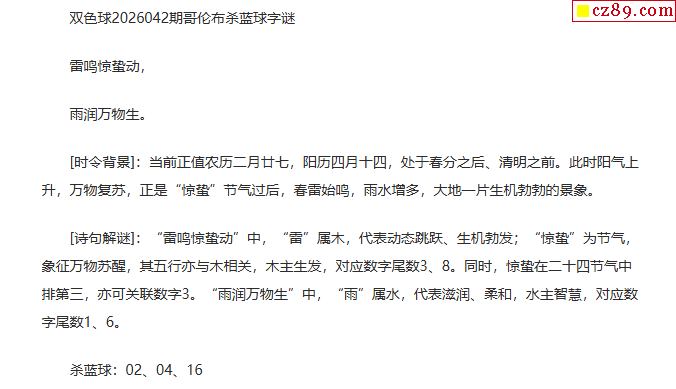 双色球字谜26年042期 鹏涛先生诗谜