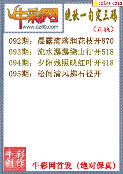2026年095期七绝圣手3d和尾字谜【牛彩网...