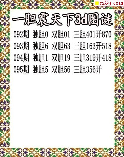 一胆震天下独胆2026095期3d图谜(原创)