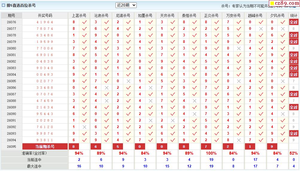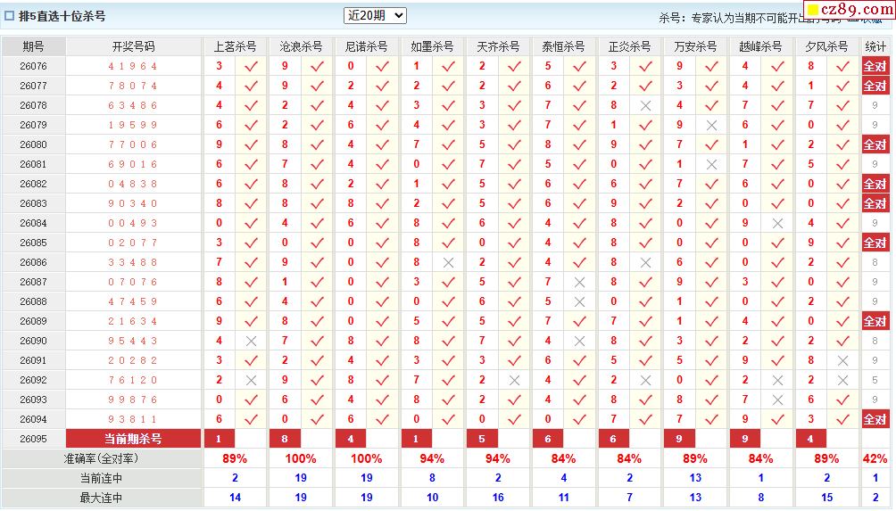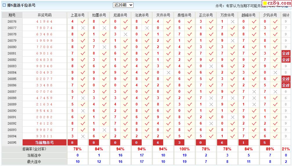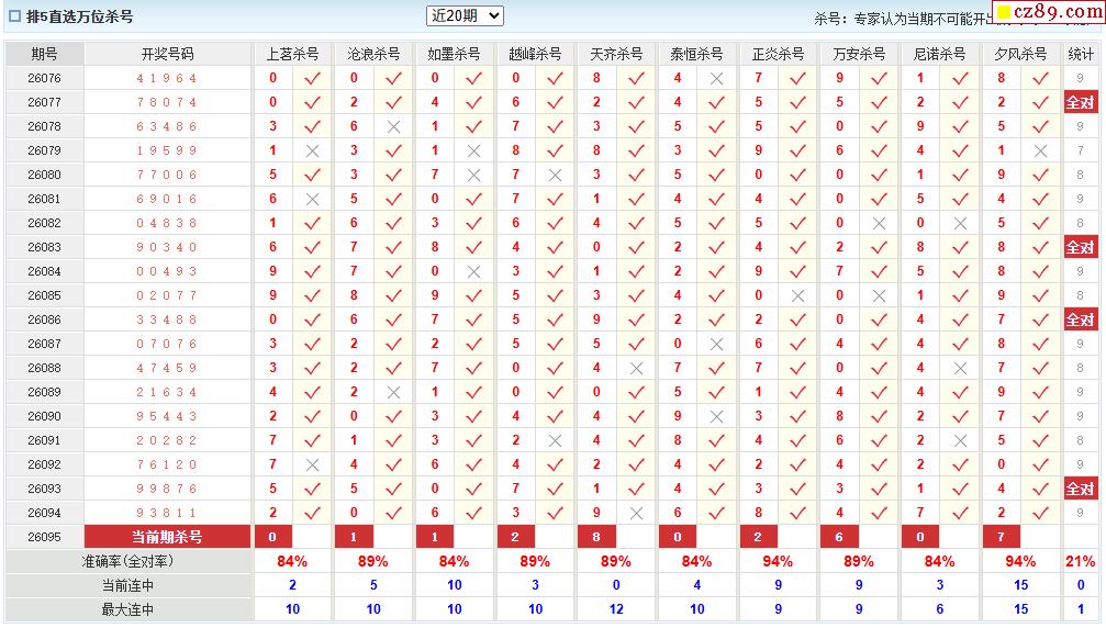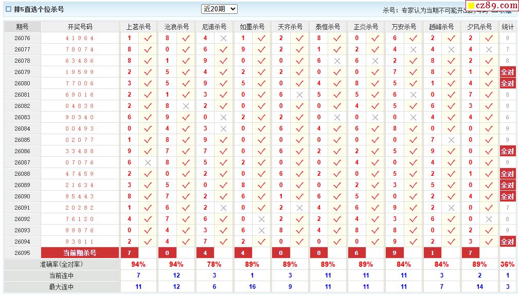 095期彩票专家体彩P5杀号推荐图表