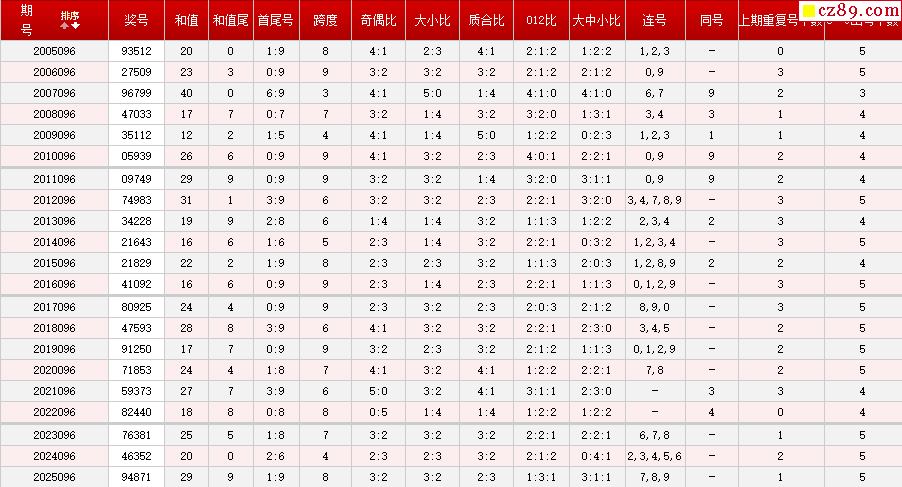 第096期体彩P5历史同期对比