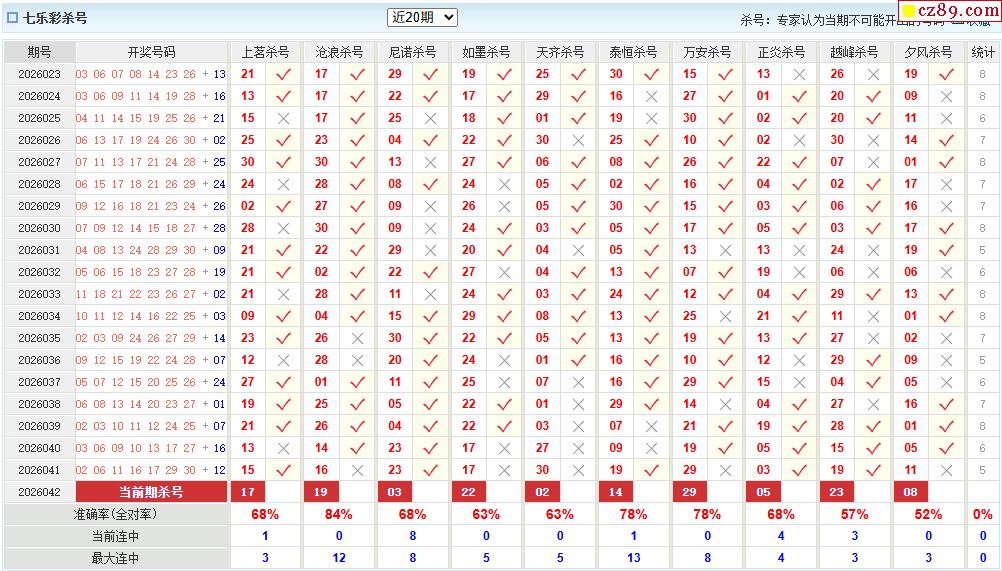 26年042期彩票专家福彩七乐彩杀号图表