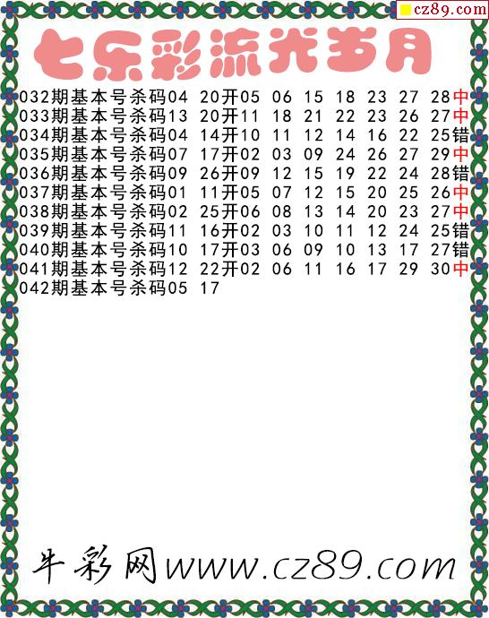 七乐彩2026042期流光岁月杀码图谜 10中6