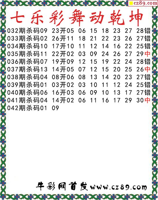七乐彩2026042期流光岁月杀码图谜 10中6