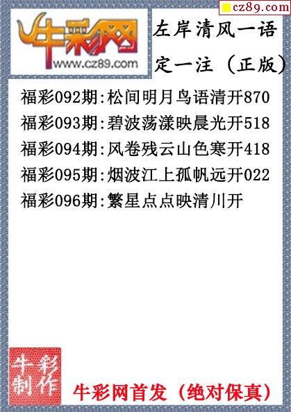 2026年096期白娘子3d跨度字谜【牛彩网特...