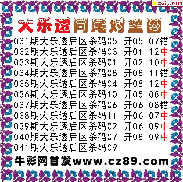 大乐透041期牛彩特邀专家前区后区杀号定胆图表