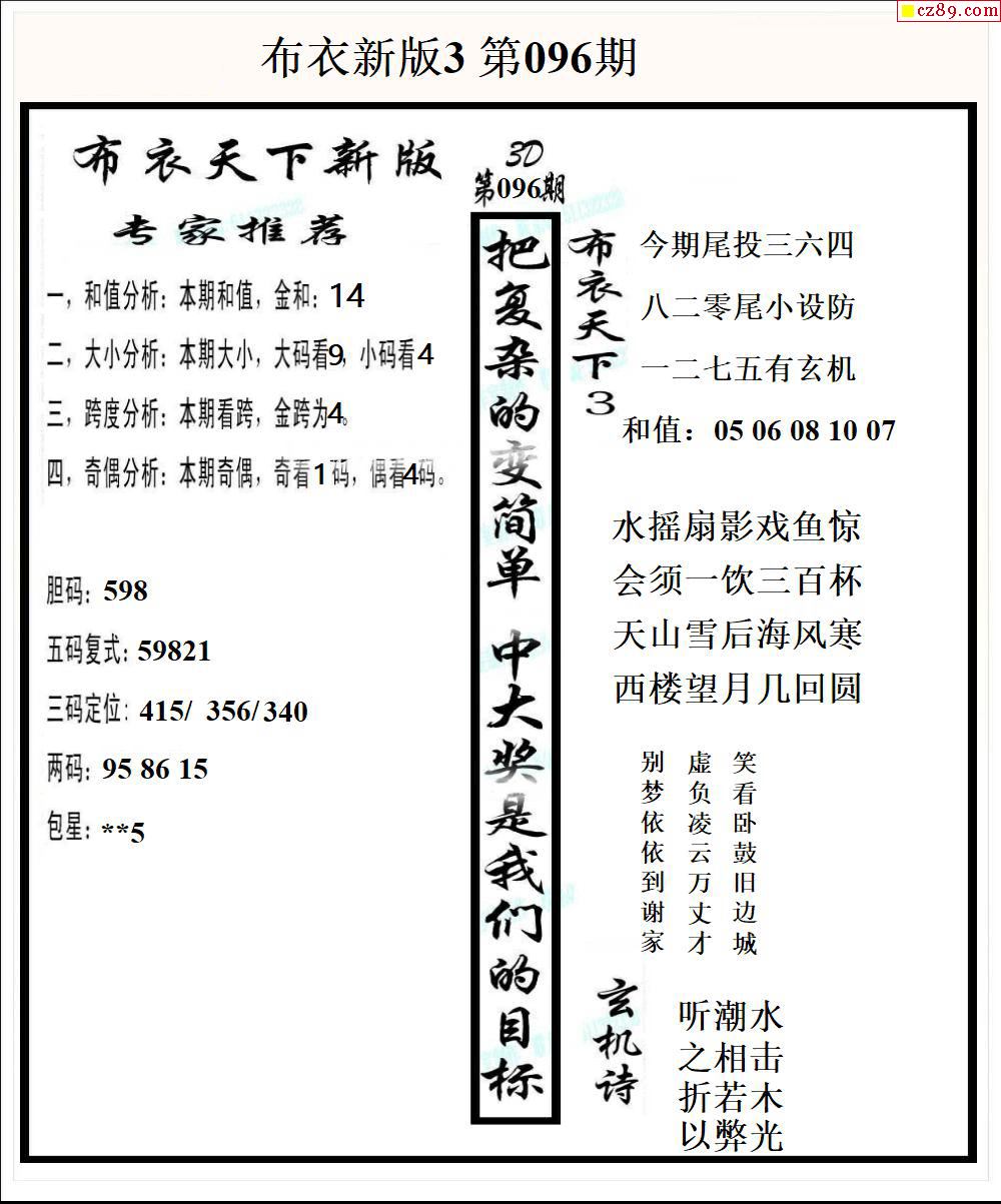 布衣天下新版2026096期3d图谜