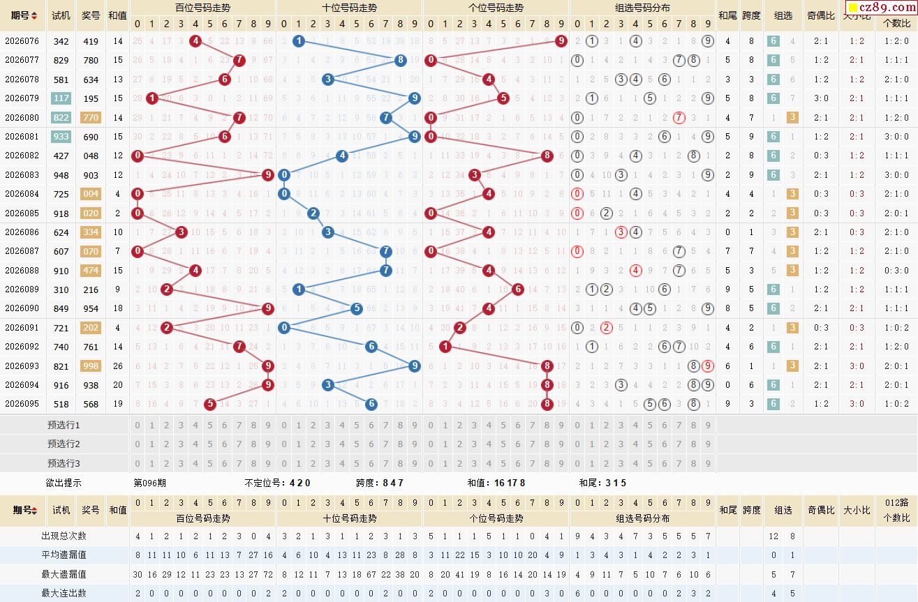第096期体彩P3历史同期对比