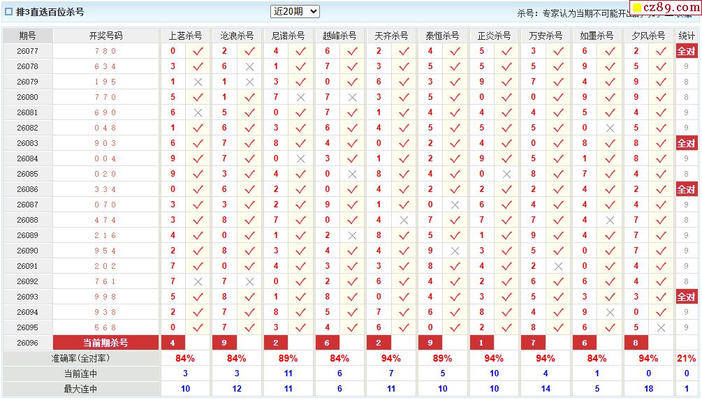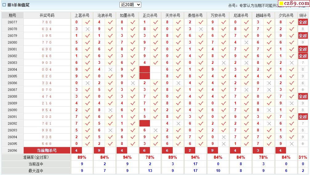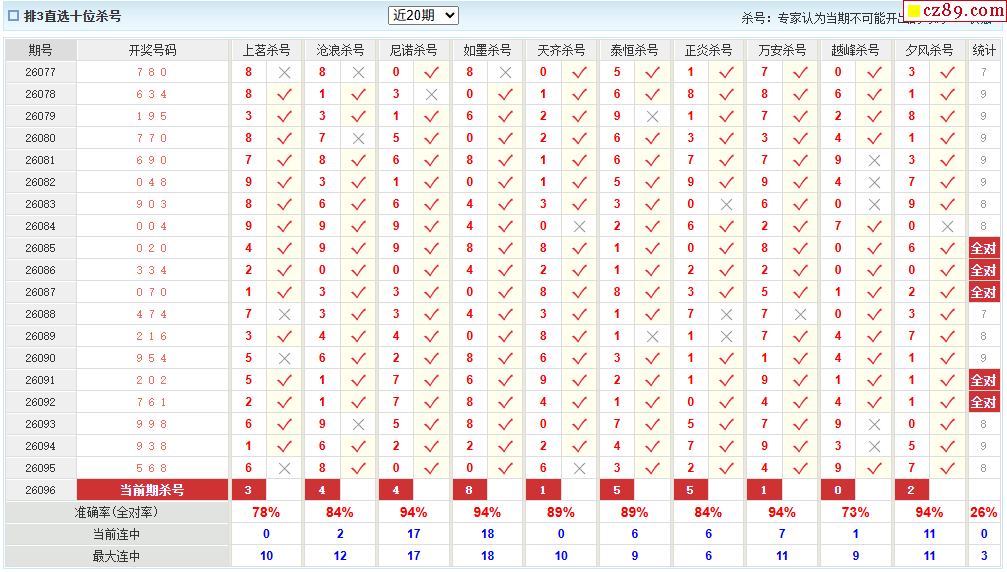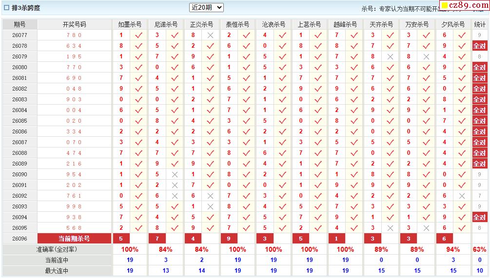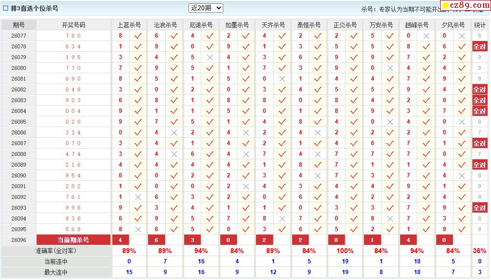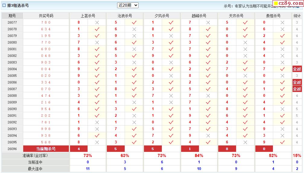 26年096期彩宝贝专家体彩P3杀号定码图表