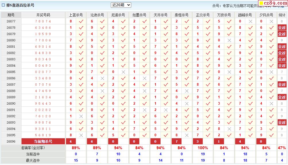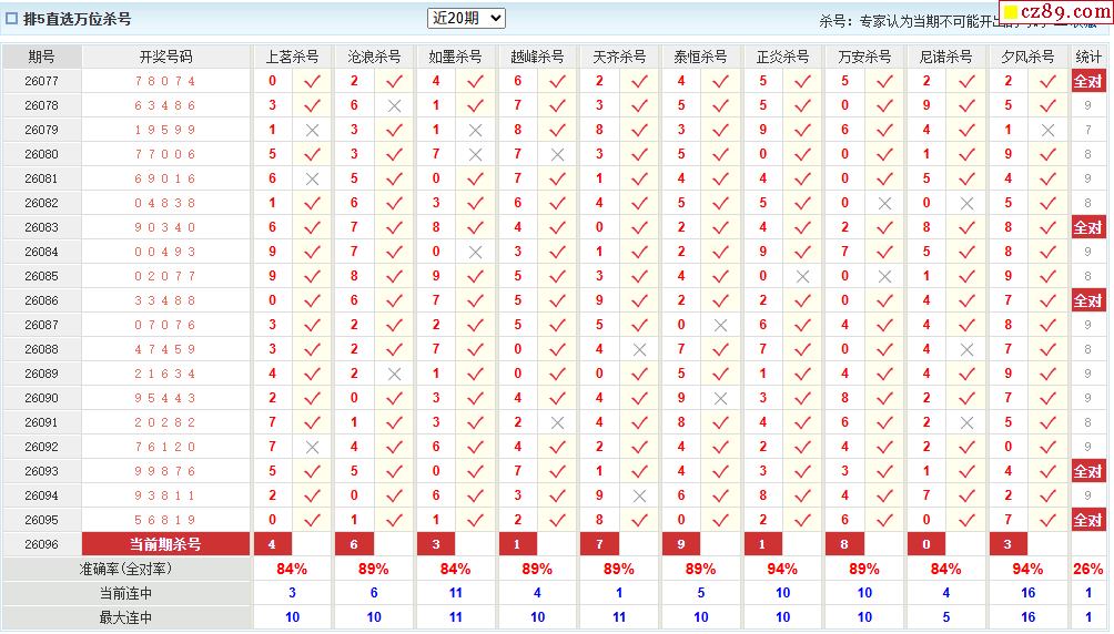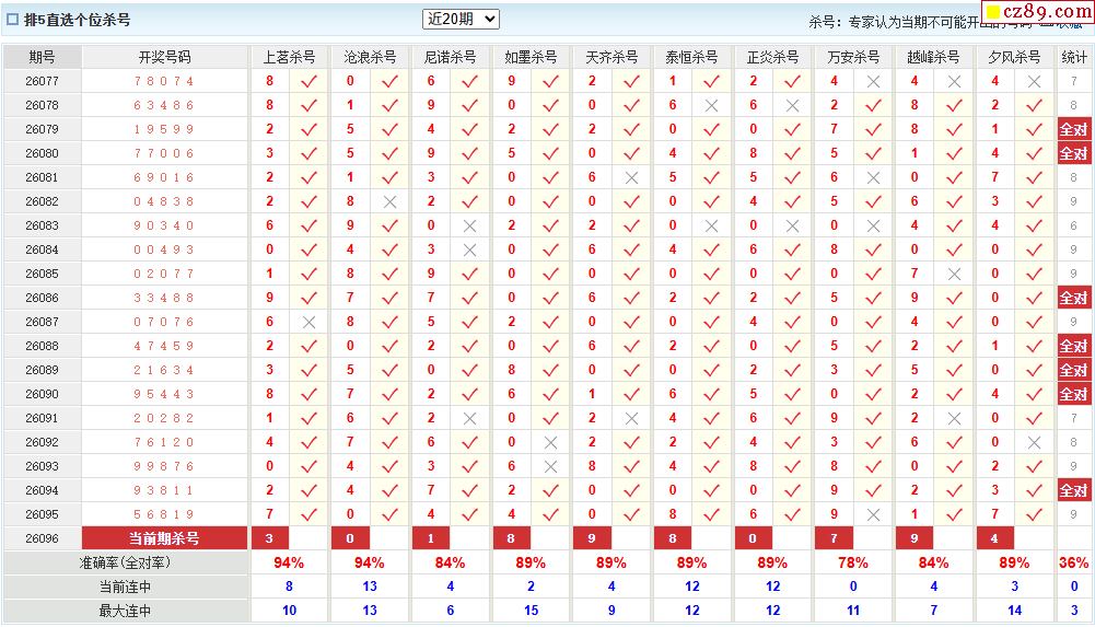 26年096期彩宝贝专家体彩P3杀号定码图表