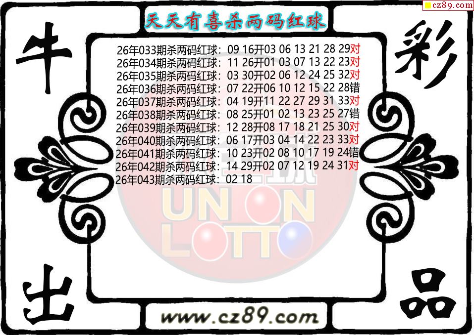 双色球044期 枣庄红人杀蓝球图迷 10中9