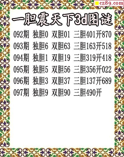 九台胆码2026097期3d图谜