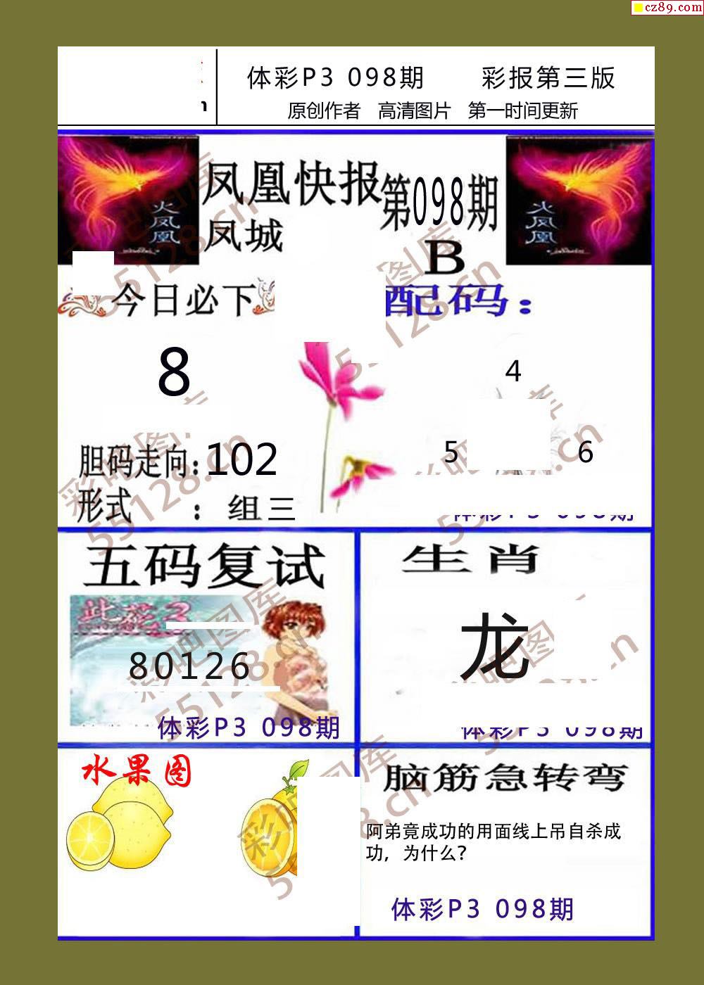 小小虎彩报098期体彩p3图谜