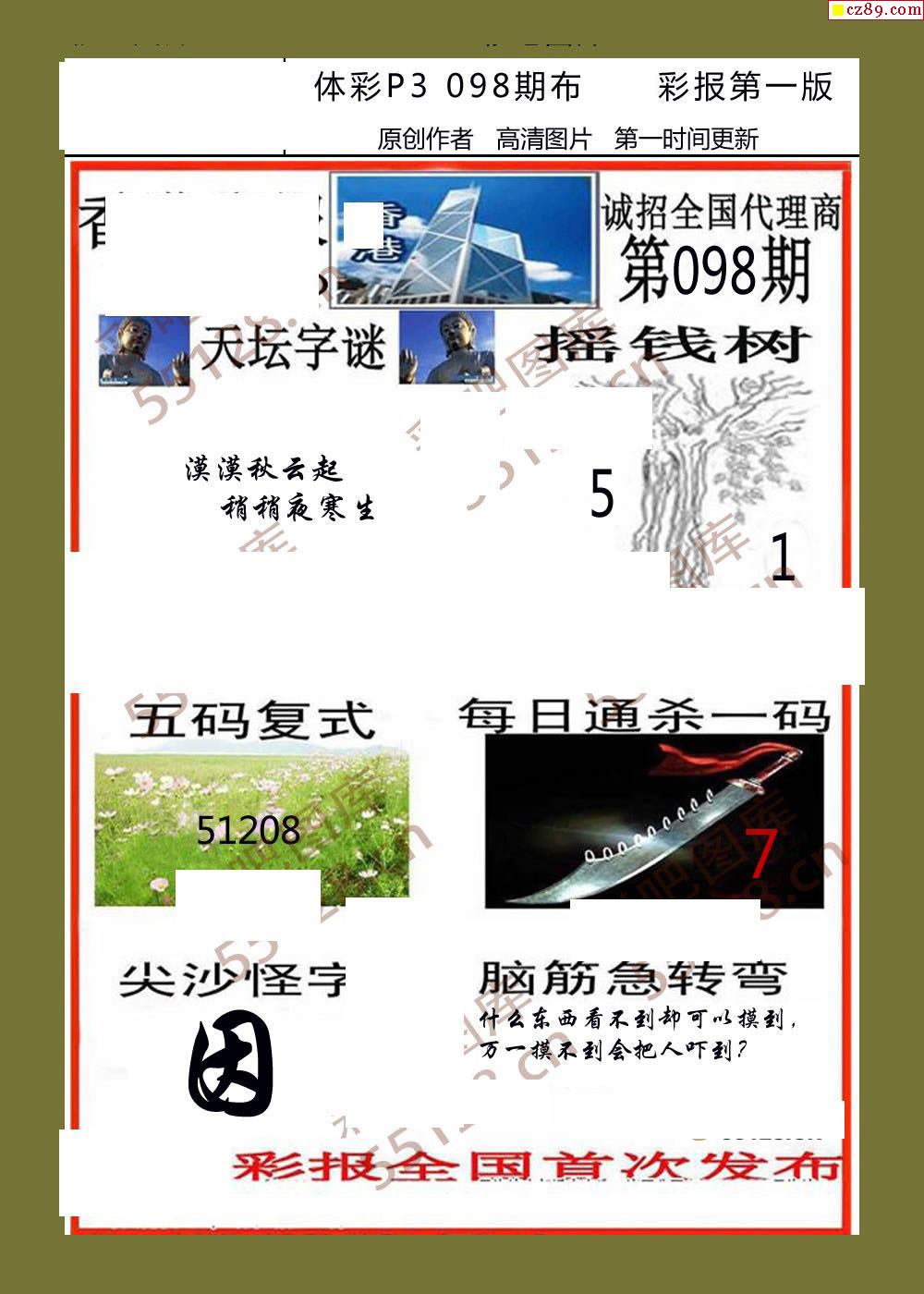 体彩P32026年098期 5188系列全图谜