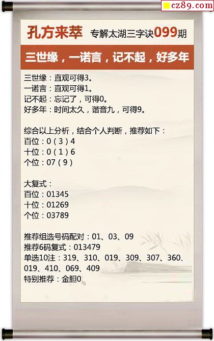 26年099期3d字谜太湖钓叟三字诀《保真》