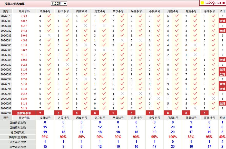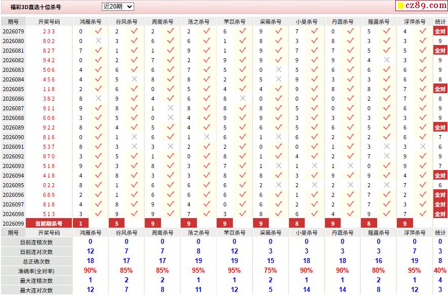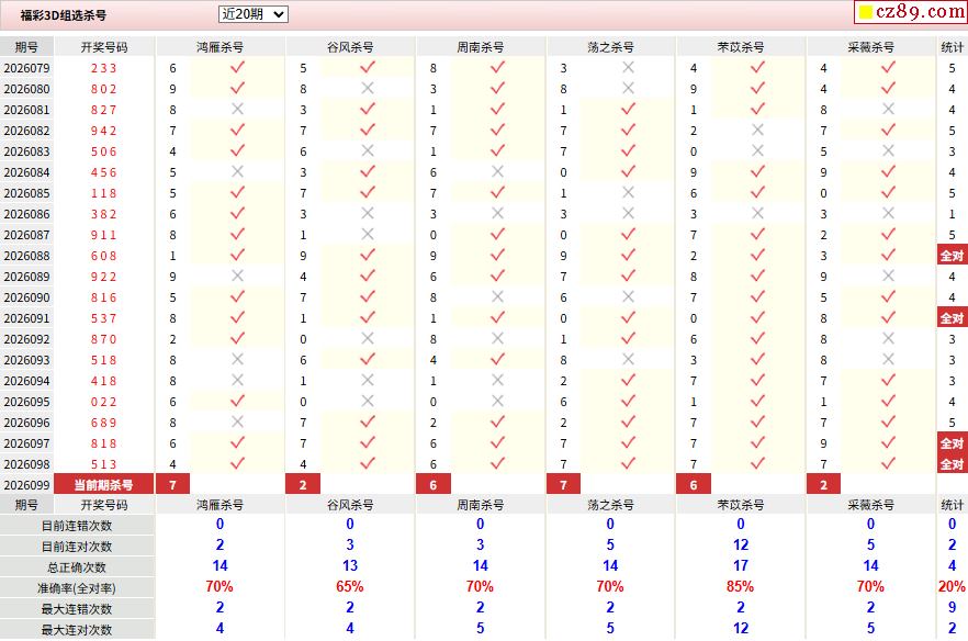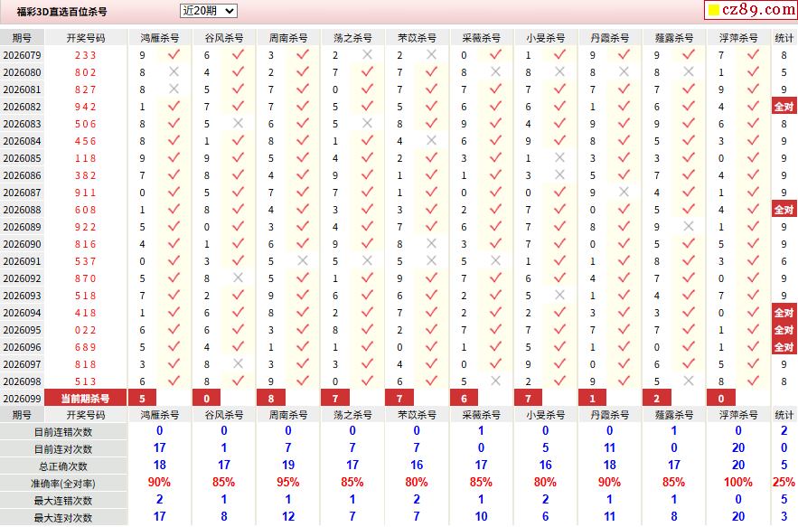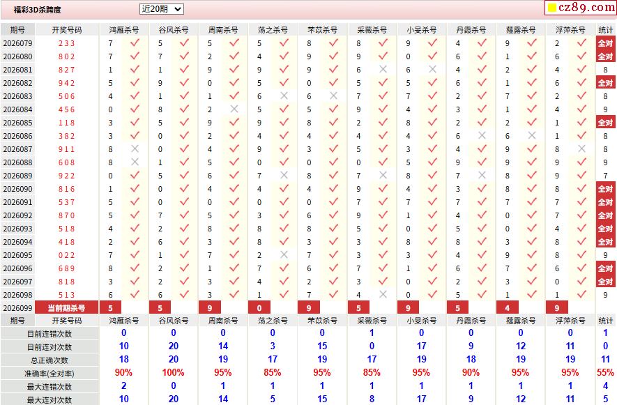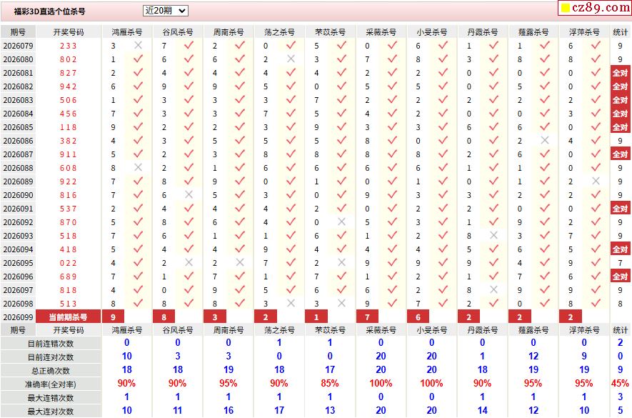 26年099期彩宝贝专家福彩3D杀号定码图表