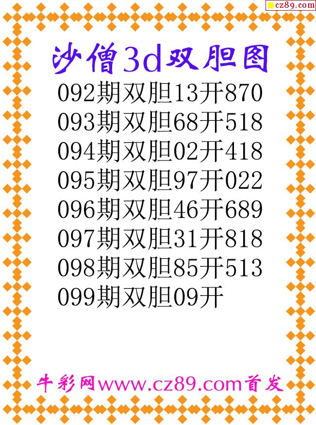 沙僧双胆26099期3d原创图谜