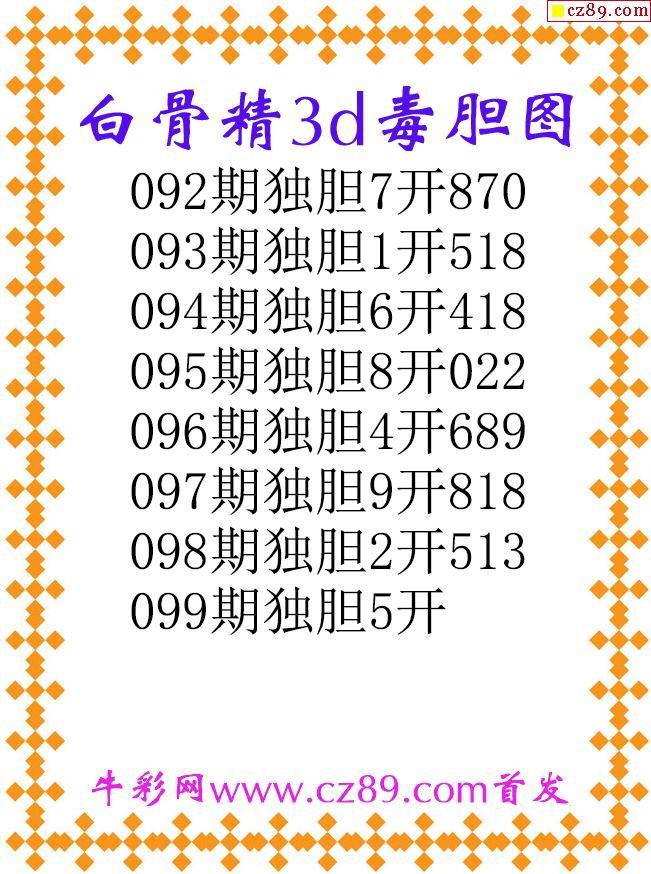 白骨精独胆26099期3d原创图谜