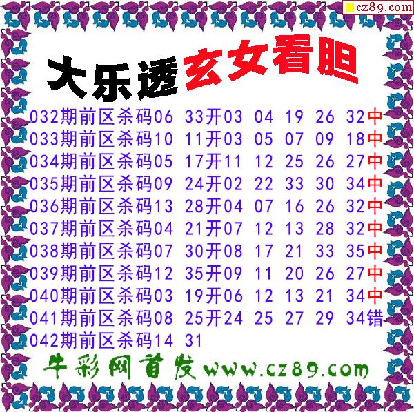 大乐透042期牛彩特邀专家前区后区杀号定胆图表