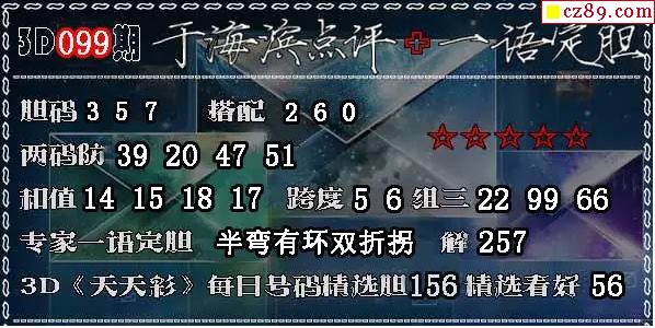3D 《天天彩》每日号码精选胆156精选看好56