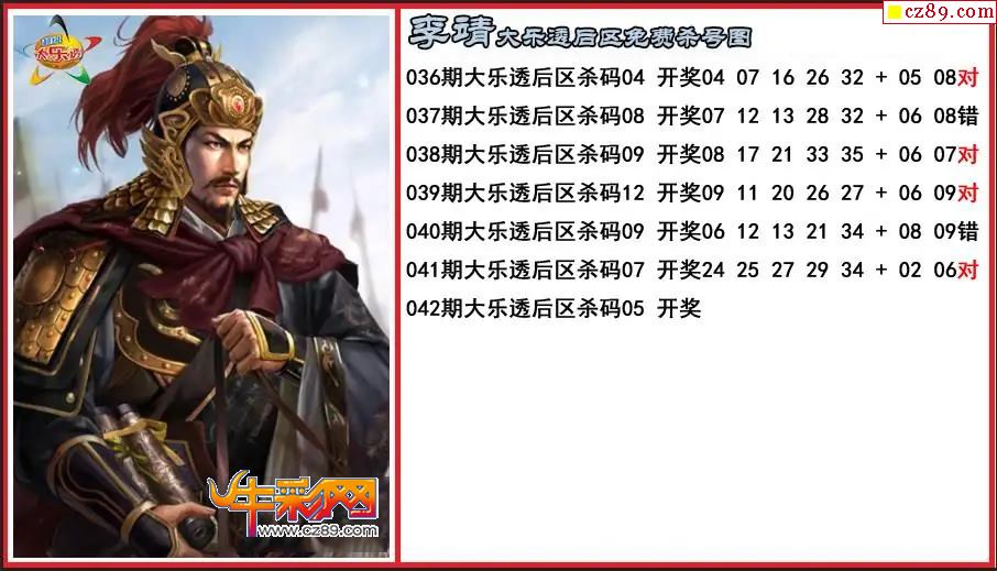 大乐透042期李广后区精准杀号一码图
