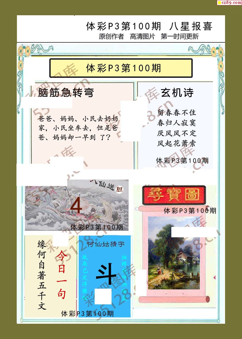2026年100期牛彩网体彩P3画迷图谜汇总分享