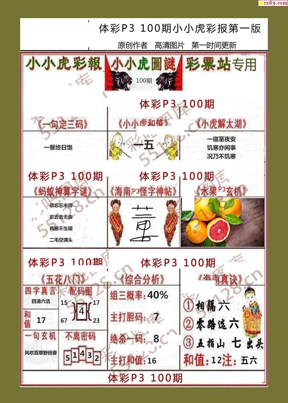 牛彩P3布衣26年100期AB版图谜(精华版)