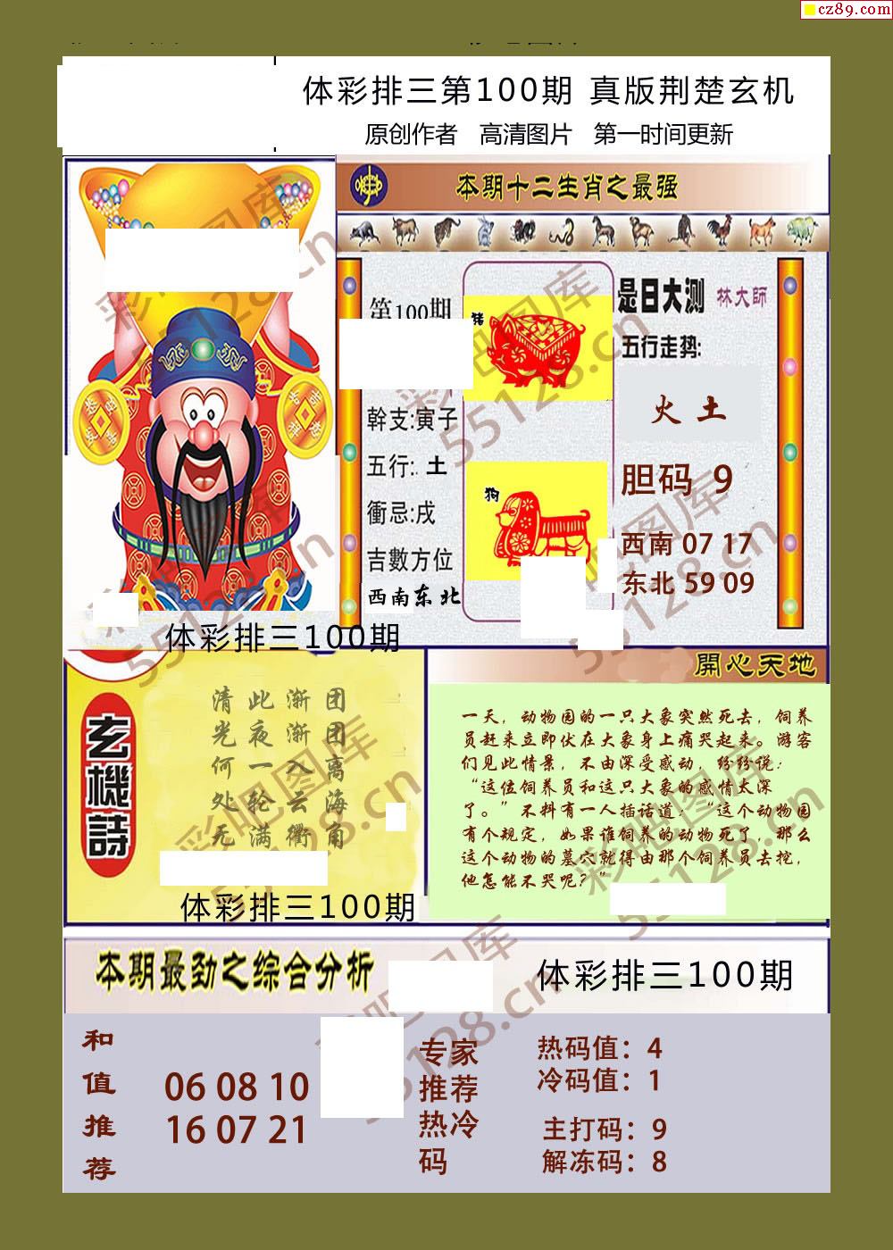 荆楚玄机100期体彩p3图谜