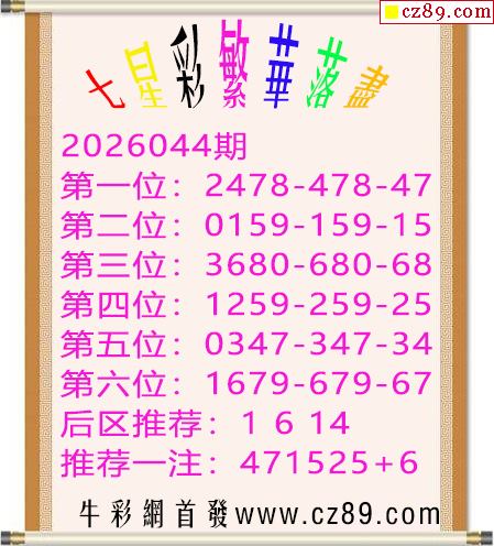 26年体彩七星彩044期 名扬天下本期推荐一注