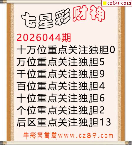 26年体彩七星彩044期 名扬天下本期推荐一注