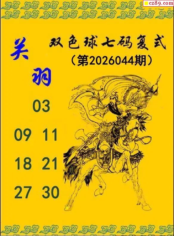 关羽七码复式26年044期双色球图谜