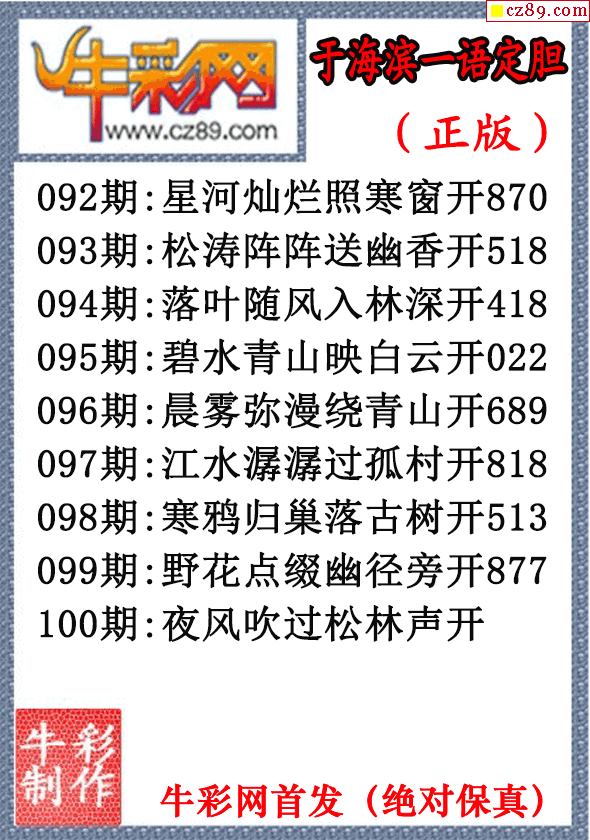 2026年100期七绝圣手3d和尾字谜【牛彩网...
