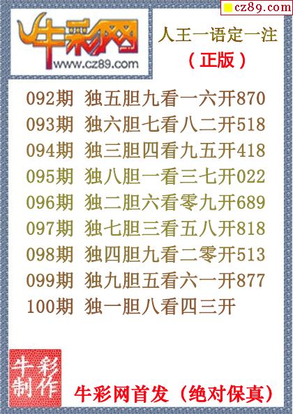 26年100期牛彩网福彩3D字谜汇总大全【晚间版】