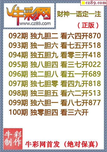 26年100期牛彩网福彩3D字谜汇总大全【晚间版】
