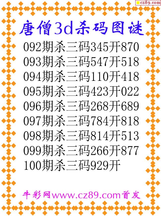 唐僧杀码26100期3d原创图谜