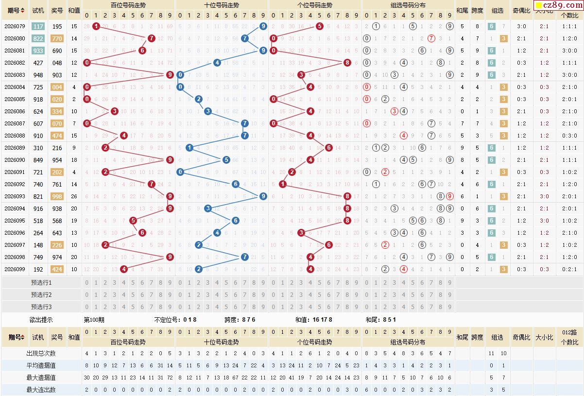 100期体彩排列3近期历史号码图表