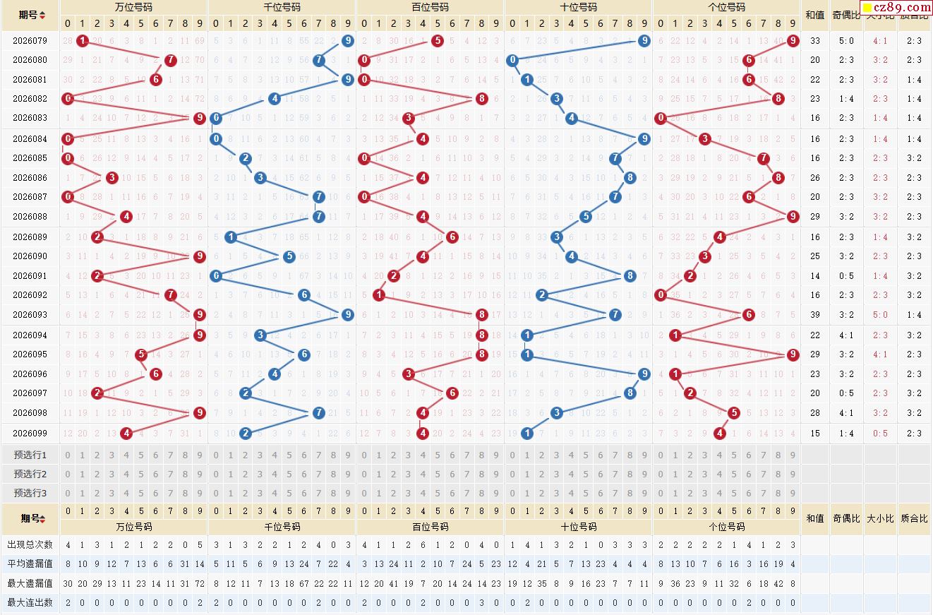 100期体彩排列5近期历史号码图表