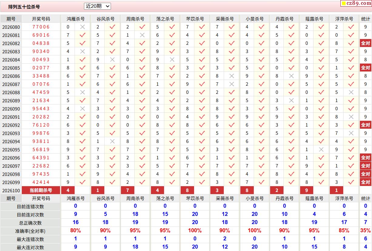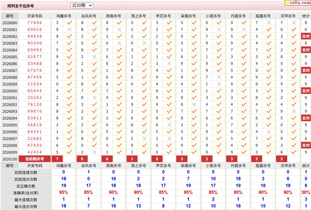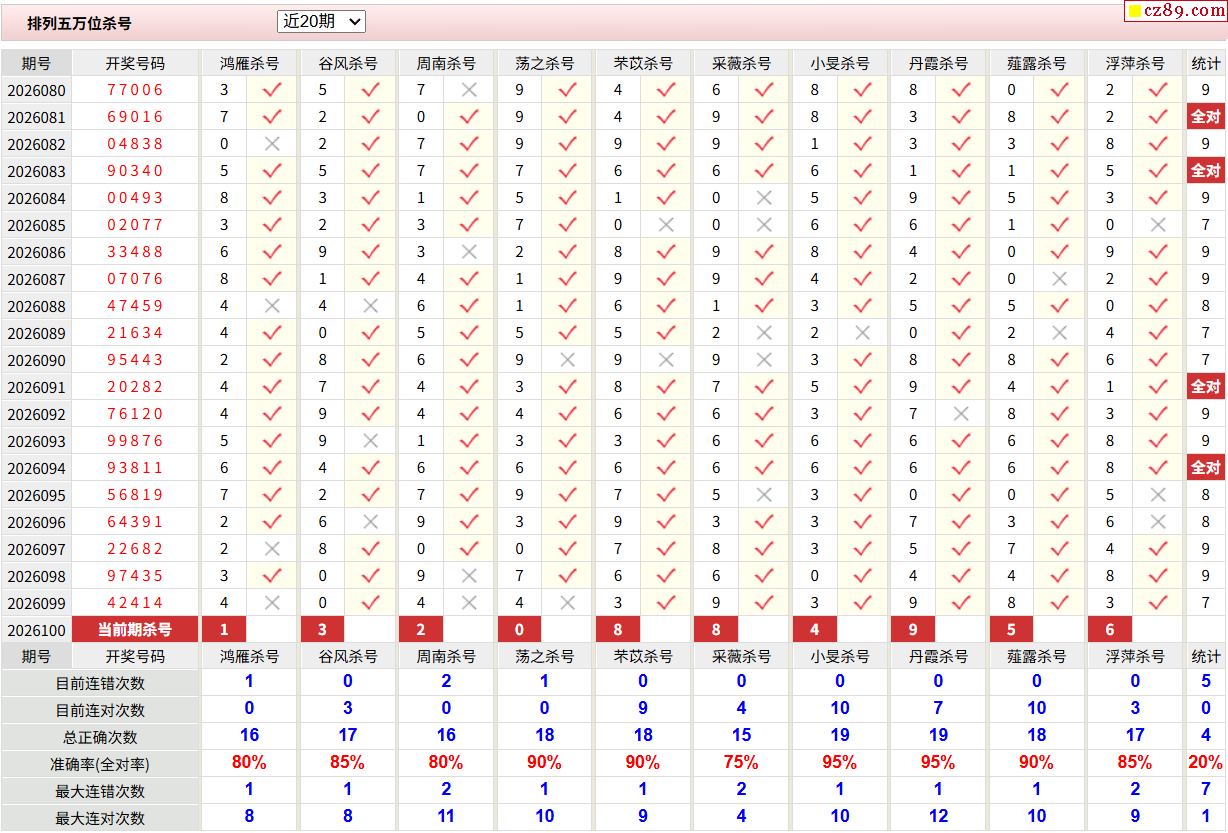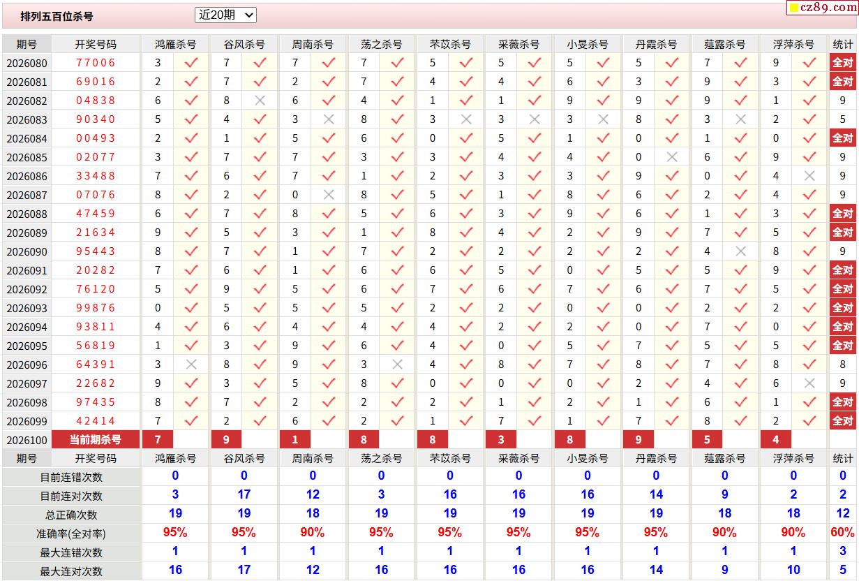 100期彩票专家体彩P5杀号推荐图表