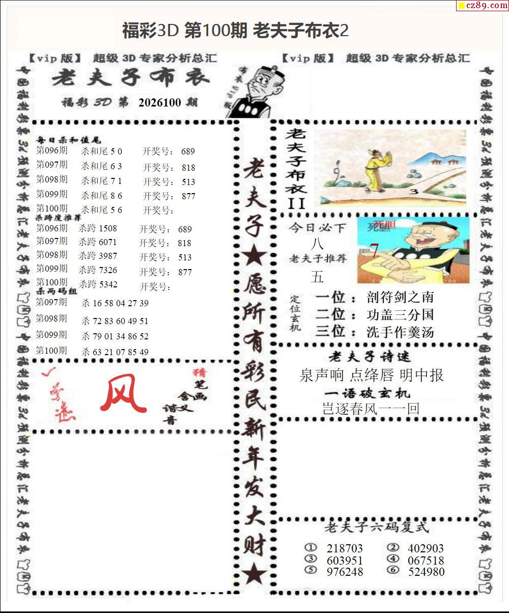 老夫子布衣2026100期3d图谜