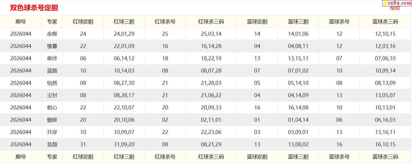 044期彩票专家双色球杀红蓝推荐汇总