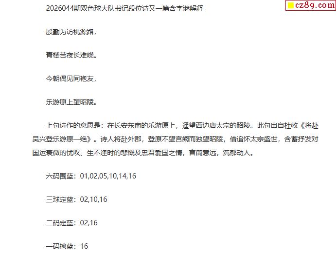 26年福彩双色球044期 左岸春风一语断蓝另版