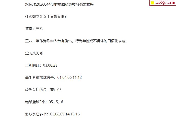 2026044期牛彩网双色球字谜汇总【保真】
