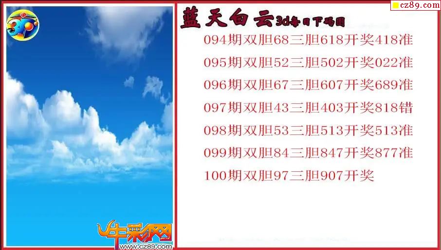 26年100期3d 蓝天白云每日下码图