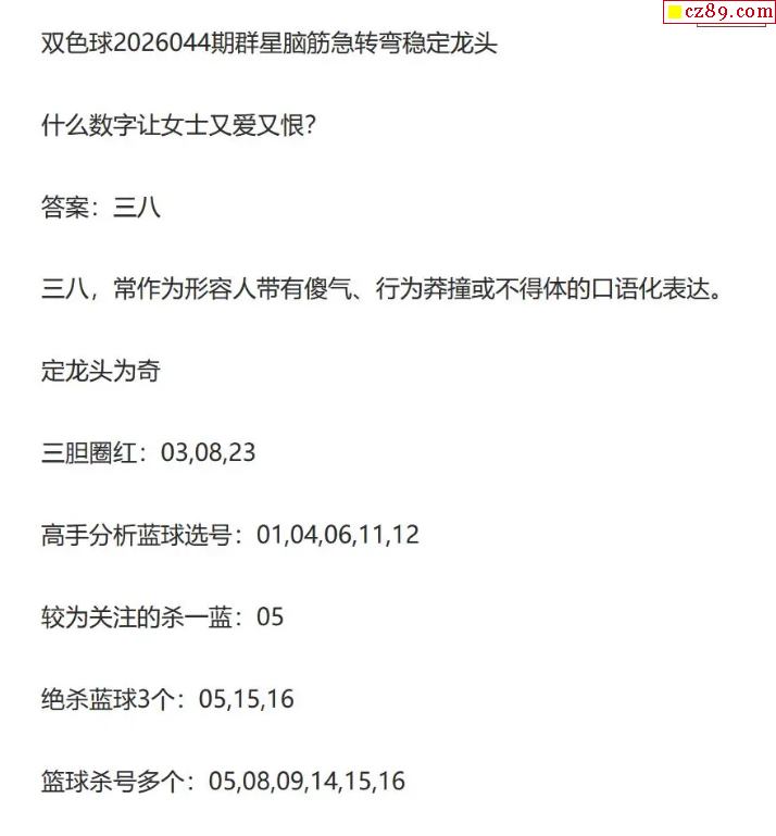 26年福彩双色球044期 群星脑筋急转弯定龙头字谜