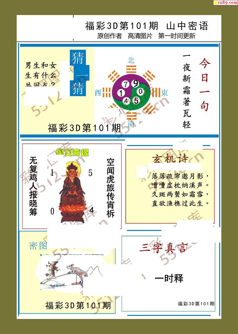 福彩3d26年101期山中密语彩报